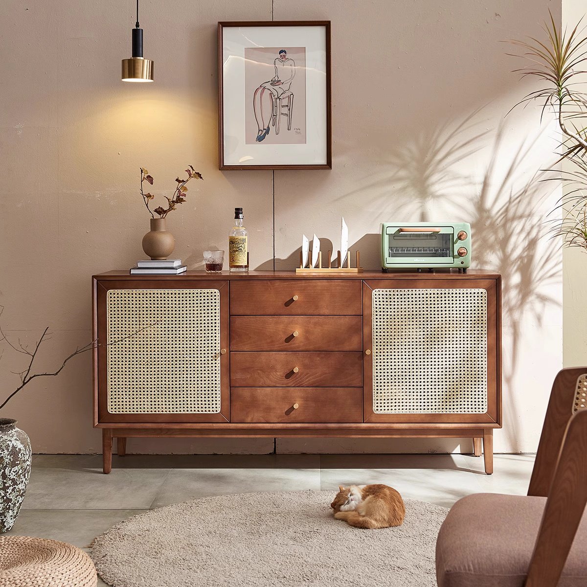Crafted with authentic rattan cane, our cabinets feature breathable, durable webbing for a timeless, bohemian-chic aesthetic
